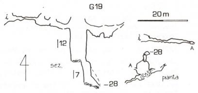 Numero:846;Nome:Pozzo G-19 delle Carsene;Regione:Piemonte;Provincia:CN;Comune:Chiusa di Pesio;Area carsica:Carsene - Pian Ambrogi;Latitudine:392328;Longitudine:4894553;Datum:UTM WGS84;Convertite da:UTM ED50;Quota altimetrica (m.slm):1900;Sviluppo reale (m):45;Dislivello negativo (m):28;Dislivello totale (m):28;Note_:N.C.;