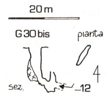 Numero:856;Nome:G-30 bis delle Carsene;Altra denominazione:Pozzo 6 - 54 Delle Carsene;Regione:Piemonte;Provincia:CN;Comune:Chiusa di Pesio;Area carsica:Carsene - Pian Ambrogi;Latitudine:391698;Longitudine:4894073;Datum:UTM WGS84;Convertite da:UTM ED50;Quota altimetrica (m.slm):1865;Sviluppo reale (m):12;Dislivello negativo (m):12;Dislivello totale (m):12;Note_:N.C.;