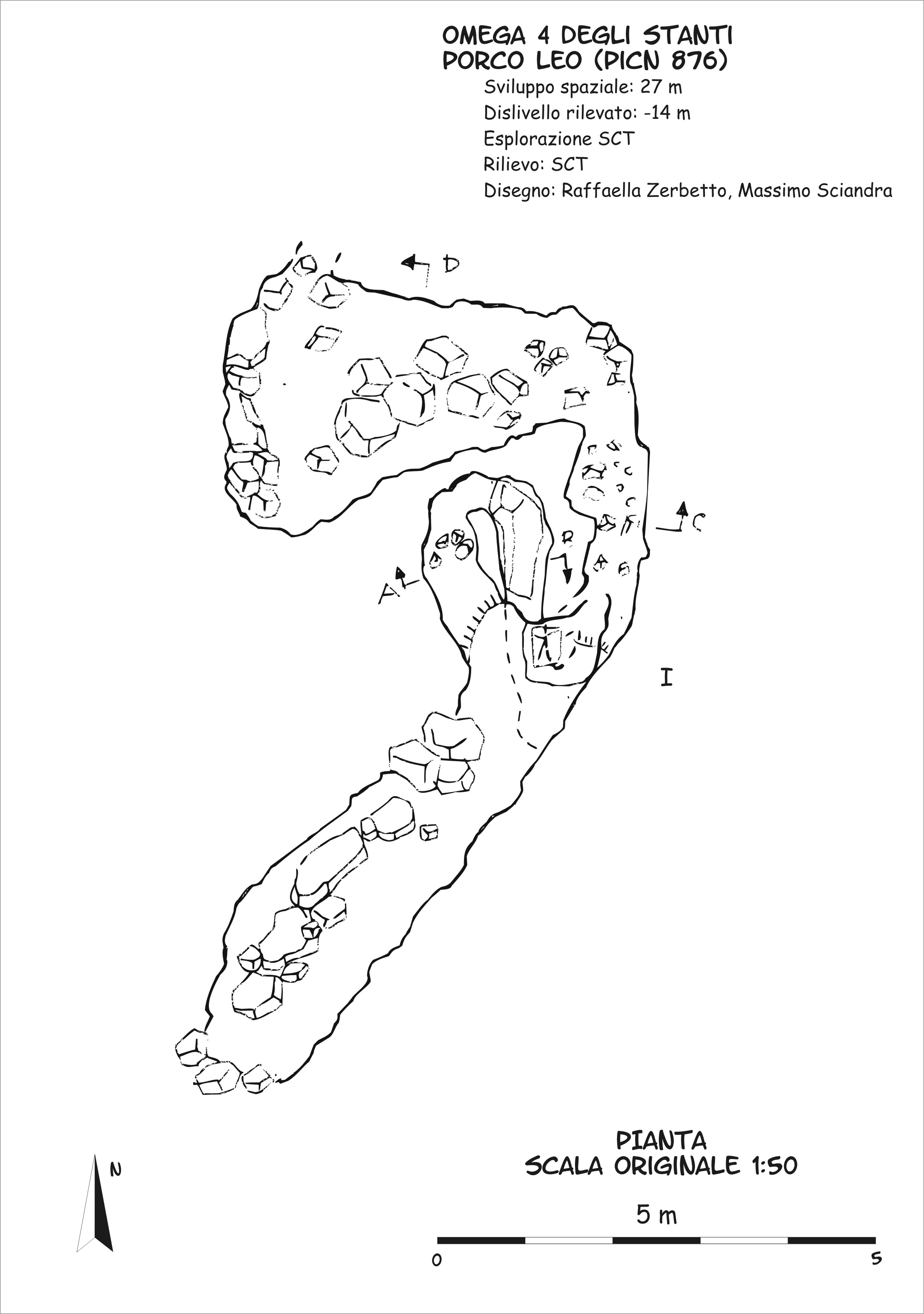 Numero:877;Nome:Pozzo Omega-4 degli Stanti;Altra denominazione:Porco Leo;Regione:Piemonte;Provincia:CN;Comune:Ormea;Area carsica:Cima Verzera;Sistema carsico:Mottera;Latitudine:408097;Longitudine:4893973;Datum:UTM WGS84;Convertite da:UTM ED50;Quota altimetrica (m.slm):1986;Posizione verificata su campo da curatore:Massimo Sciandra;Sviluppo reale (m):27;Sviluppo planimetrico (m):20;Dislivello negativo (m):10;Dislivello totale (m):10;Note meteorologiche:aspira forte in estate;Data aggiornamento catastale:09/11/2018;Note_:N.C.;Descrizione:Buco impostato su piccola dolina. La cavità scende con brevi salti e strettoie in ambienti di frana.;Immagine ingresso:Si;Altre immagini:No;Rilievo:Si;