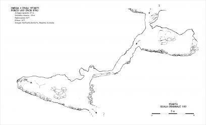 Buco impostato su piccola dolina. La cavità scende con brevi salti e strettoie in ambienti di frana.