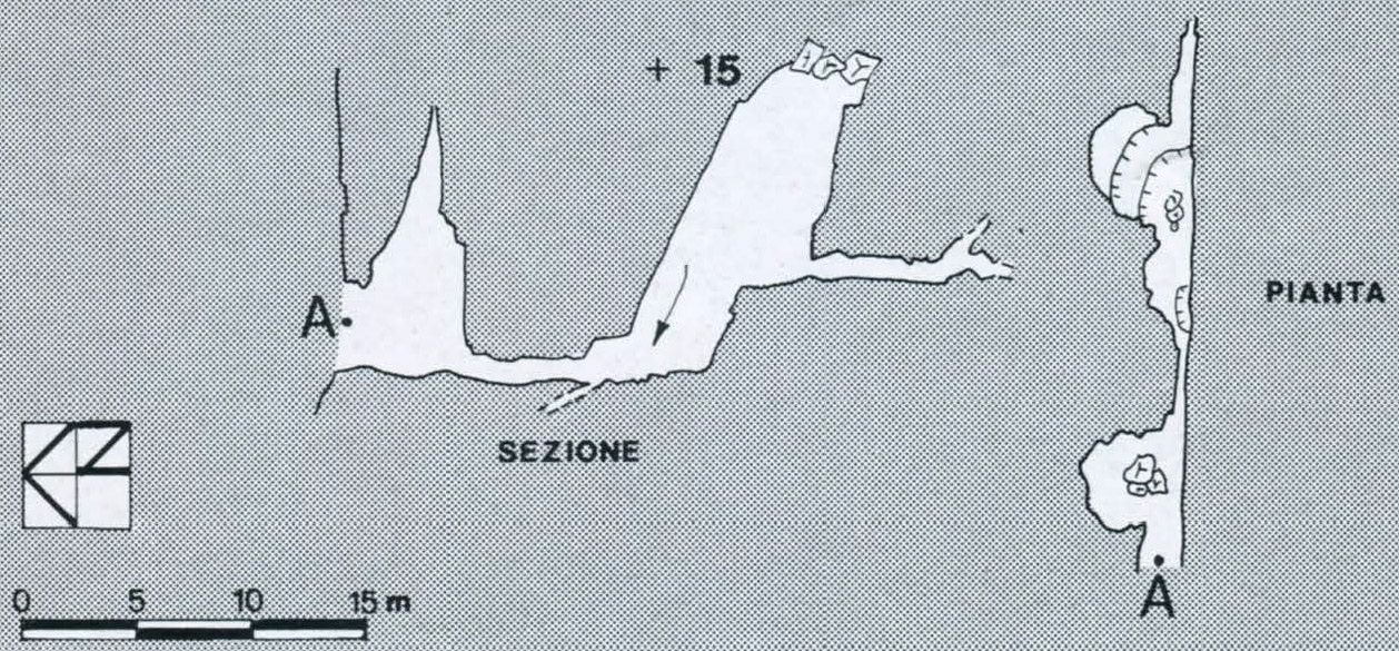 Cavità ad andamento ascendente, meandriforme, con sensibile corrente d'aria impostata su una frattura E-W.